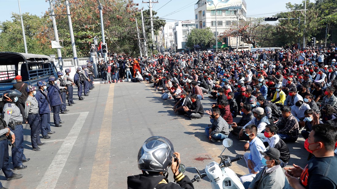 综合媒体报道,缅甸民众并未因为宵禁而停止示威。大批民众聚集首都内比都、仰光等城市继续抗议,进而遭受警方以水炮对付。