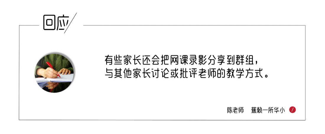 除了耗费精力准备教材,网课也让老师承受许多无形的压力。陈老师举例,有些低年级的学生在上网课时,身边有家长陪同,当老师稍微严厉或训话学生时,有些家长会感到不愤,直接开麦克风批评老师的行为。