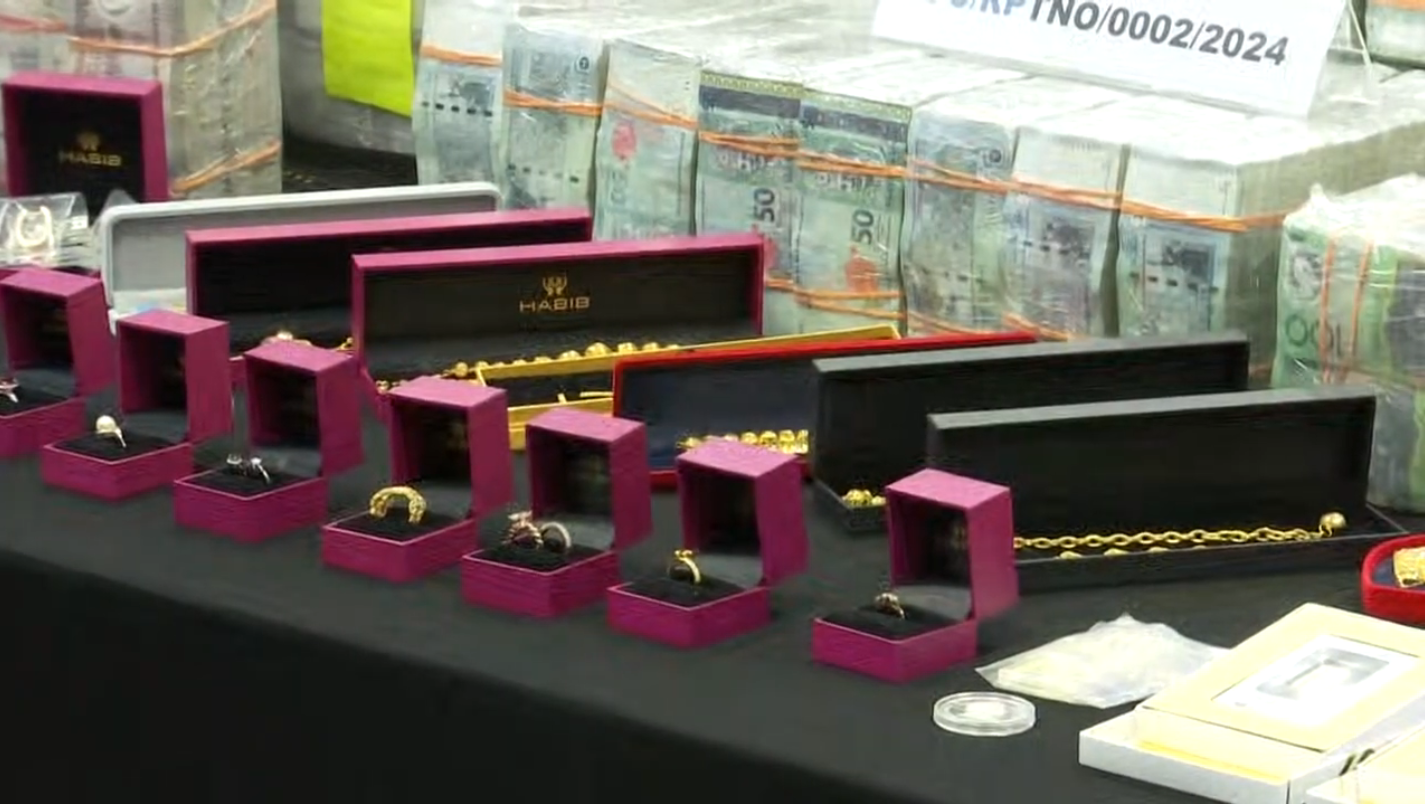 “目前为止,我们估算的金额为1.77亿令吉,其中包括各国货币现金,以及价值700万令吉的金条。这些金条按照当前价格,每公斤价值42.4万令吉。”