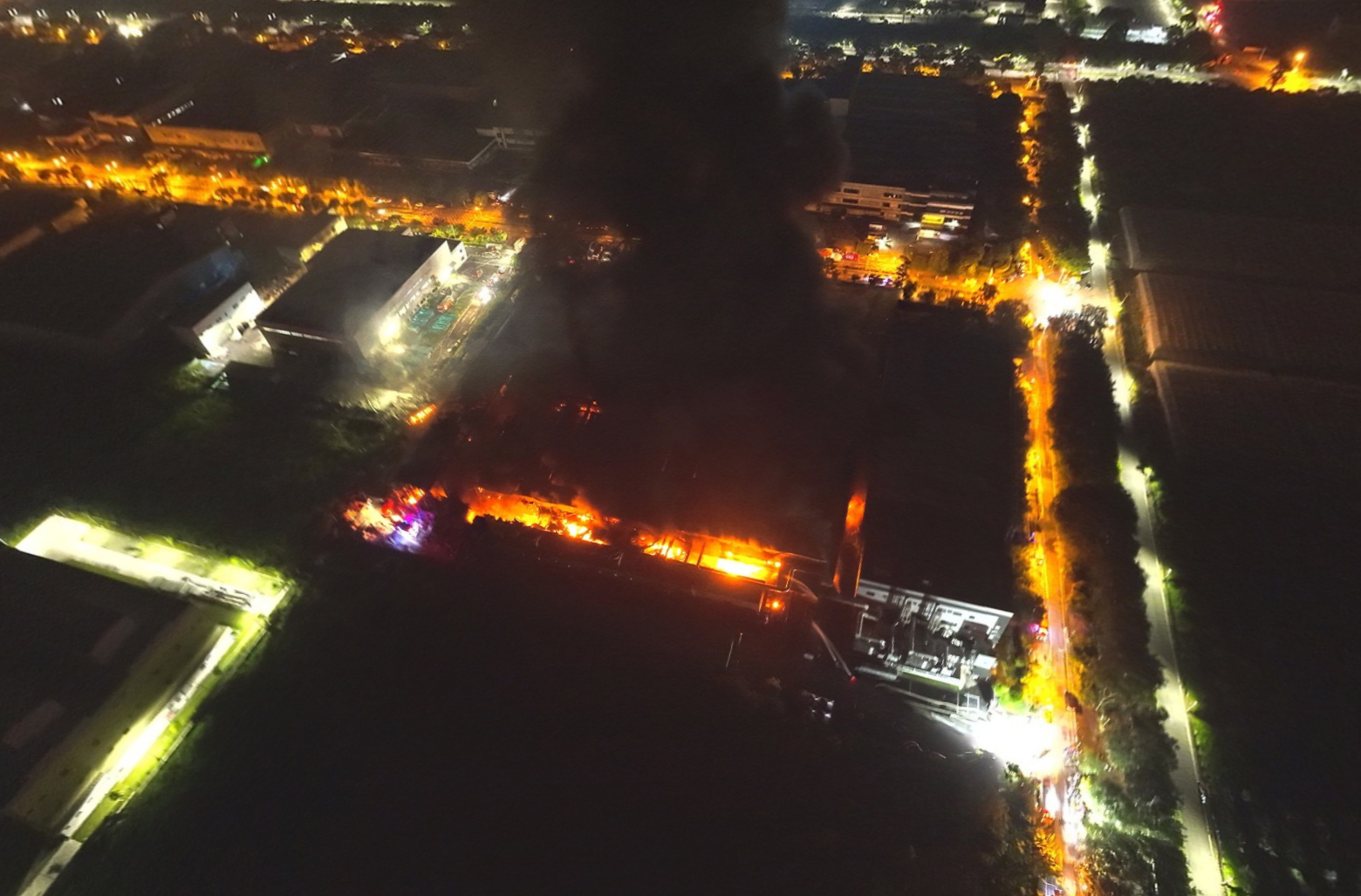 截至目前,工厂起火原因和起火点都是未知数。