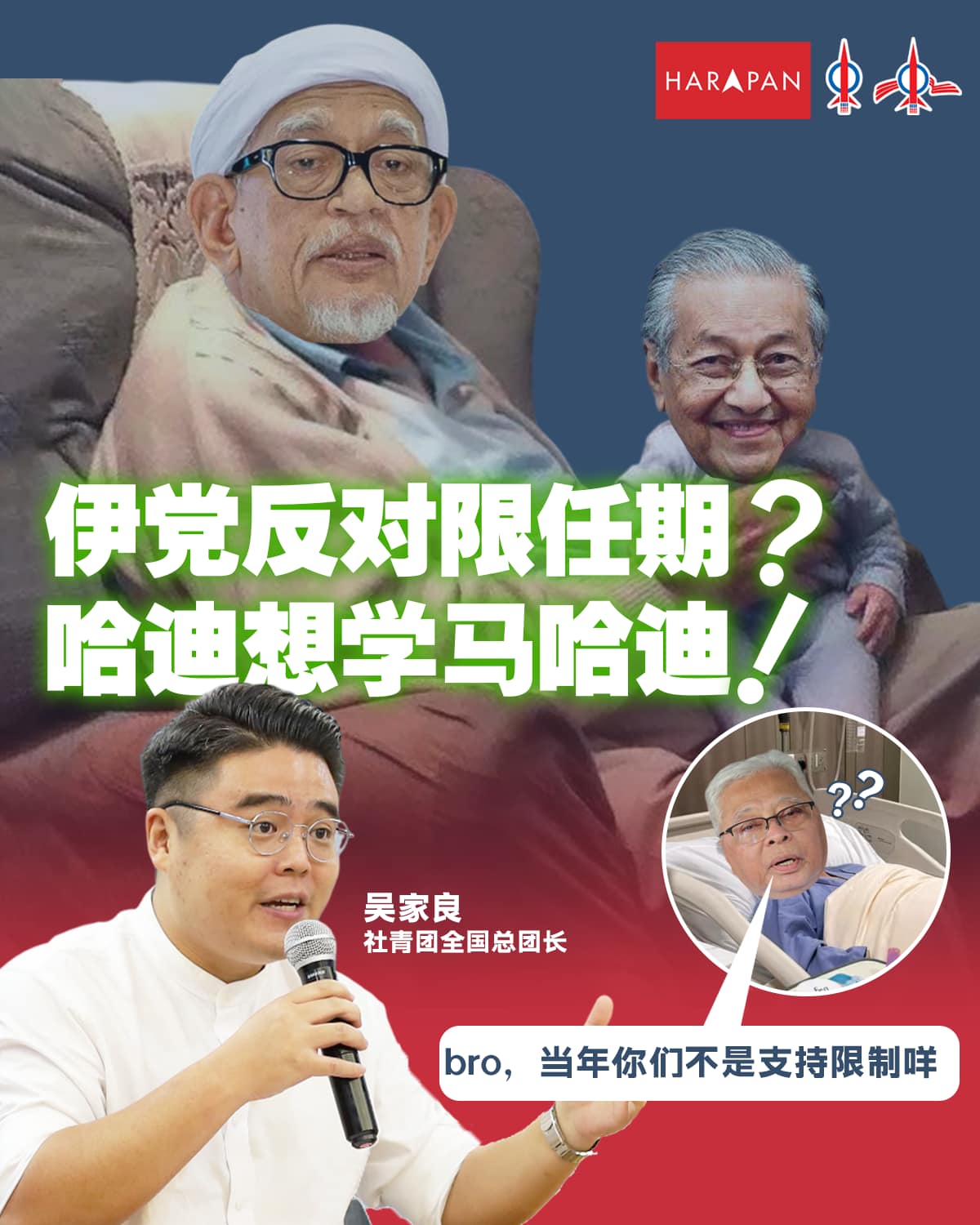 “哈迪阿旺反对首相任期制,难道是因为他打算步前首相马哈迪的后尘,一干就是22年,甚至更久?”