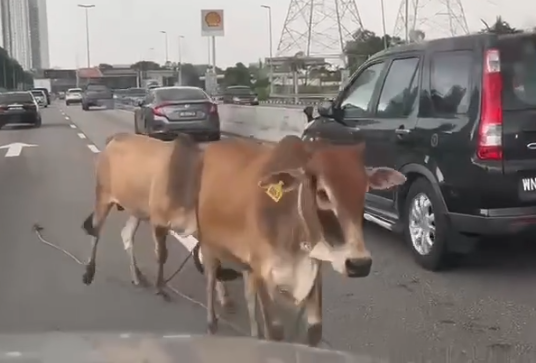 根据网媒mStar报导,有网民在白蒲大道(LDP)靠近格拉那再也(Kelana Jaya)一带,拍下两头牛在大道中央反方向逃窜的视频。