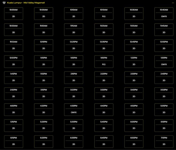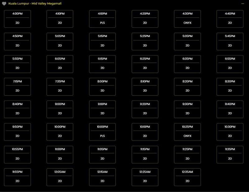 《热点》记者查询GSC官网后发现,吉隆坡谷中城购物中心今天从下午4.00PM到凌晨12.35AM依旧每隔十分钟就有一个场次,目前大部分场次仍能买到戏票。