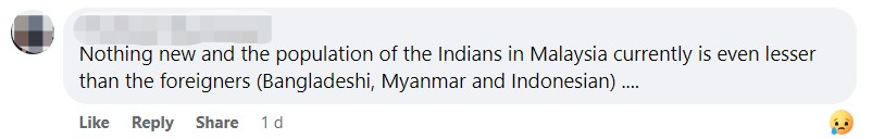 "这不是新鲜事,印裔的人口在马来西亚比外国人还要少(孟加拉人、缅甸人和印尼人)...”