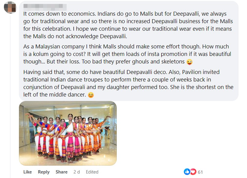 一些网民则认为,这是受到消费力的影响,因为印裔同胞通常会选择传统服装,对商场来说不会产生额外收入。