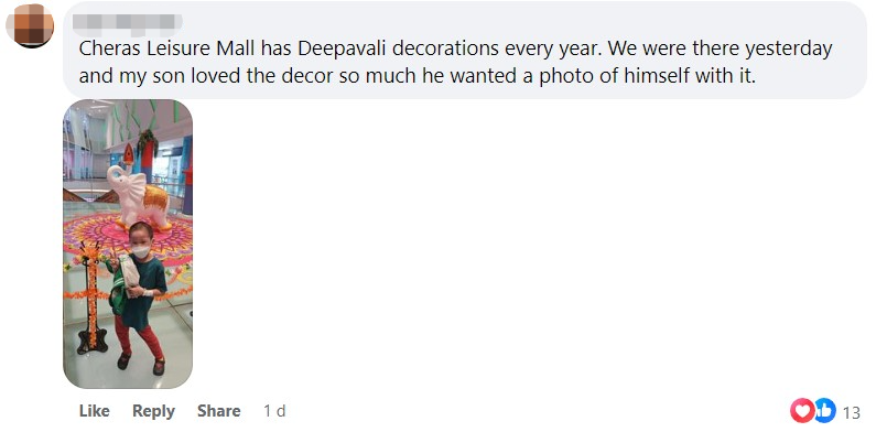 “Cheras Leisure Mall每年都有屠妖节装饰。我们昨天就在那里,我儿子非常喜欢这里装饰,还要求要拍照。”