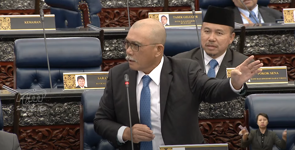 土团党比鲁兰国会议员罗纳建迪认为,在科技发展迅速的时代,阻止议员们使用手机直播,似乎有点不符合逻辑。(图片截图自: Parlimen Malaysia YouTube)