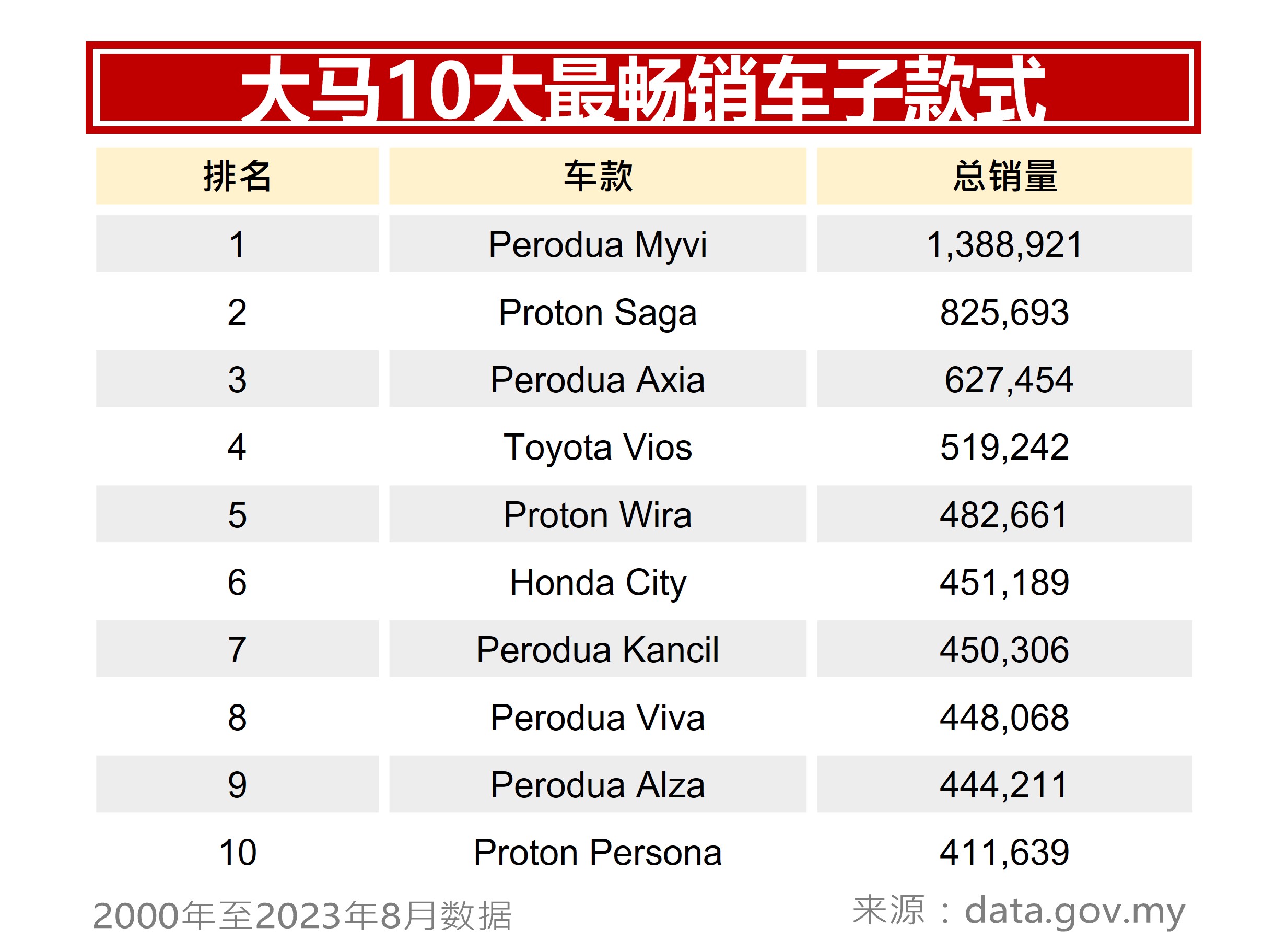 那20多年来,第二畅销的车款又是哪一个呢?答案是Proton Saga,自2000年已售出825,693 辆。