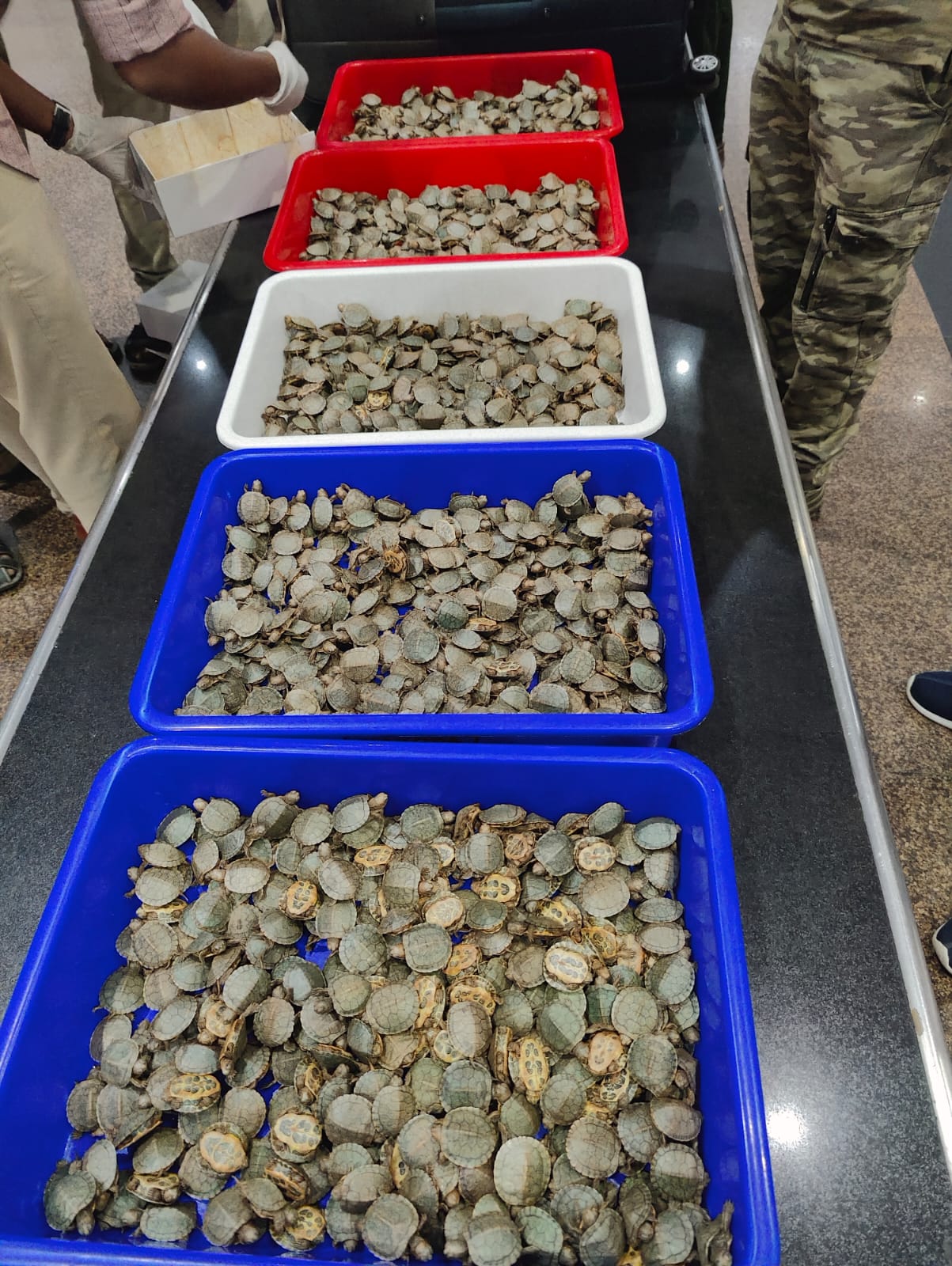 6月26日,2名从吉隆坡机场飞抵印度真奈的男子,一下机就被印度海关拦截逮捕。海关从他们的托运行李中,发现了多达6,850只活着的小型红耳龟。