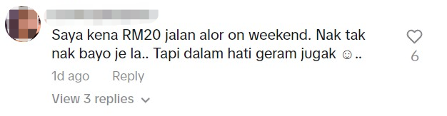 “我周末在亚罗街曾被征收RM20,就付钱而已,但是在心里还是很生气。”