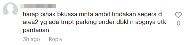 "希望有关当局立即在吉隆坡市政厅(DBKL)管辖的停车位采取行动,并进行监察。"