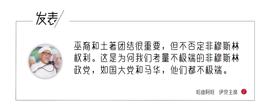 哈迪阿旺说,虽然行动党、公正党和诚信党有马来人,但他们没有展现出自己是穆斯林。他表示,他们的立场是支持马哈迪担任首相至任期结束,但马哈迪是否要任相到任期结束,什么时候要举行大选?这就让他自己决定。