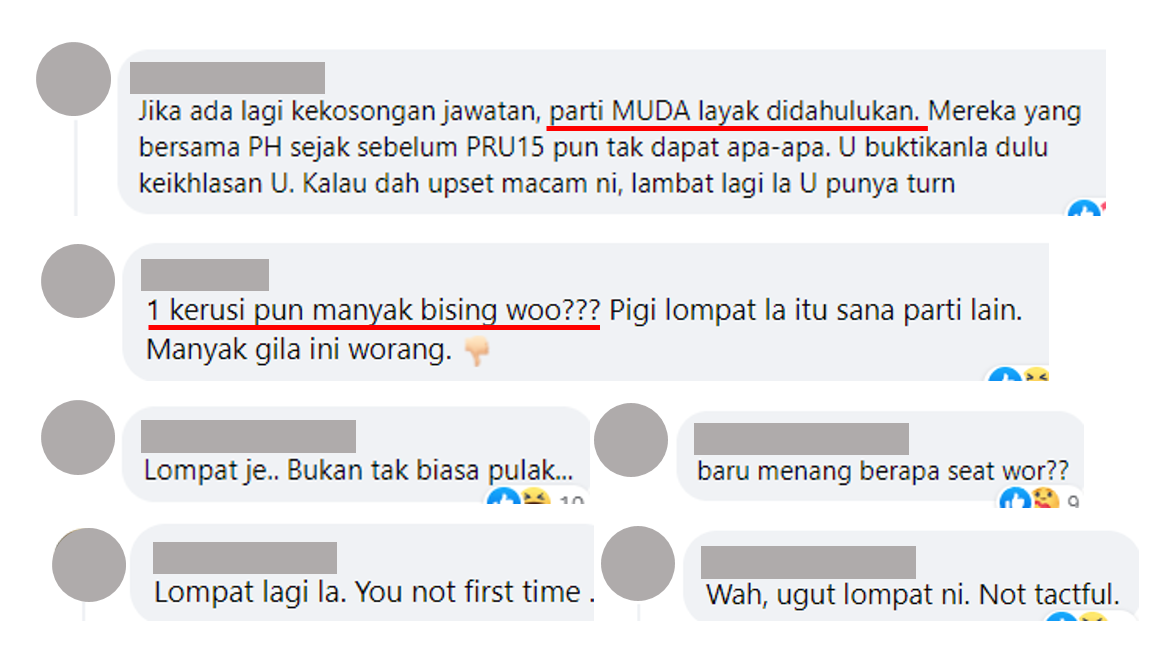 “才赢一席就要入阁做大官,我认为(民主联盟党)赛沙迪更有资格入阁,因为他在大选前就与希盟+同在了。”