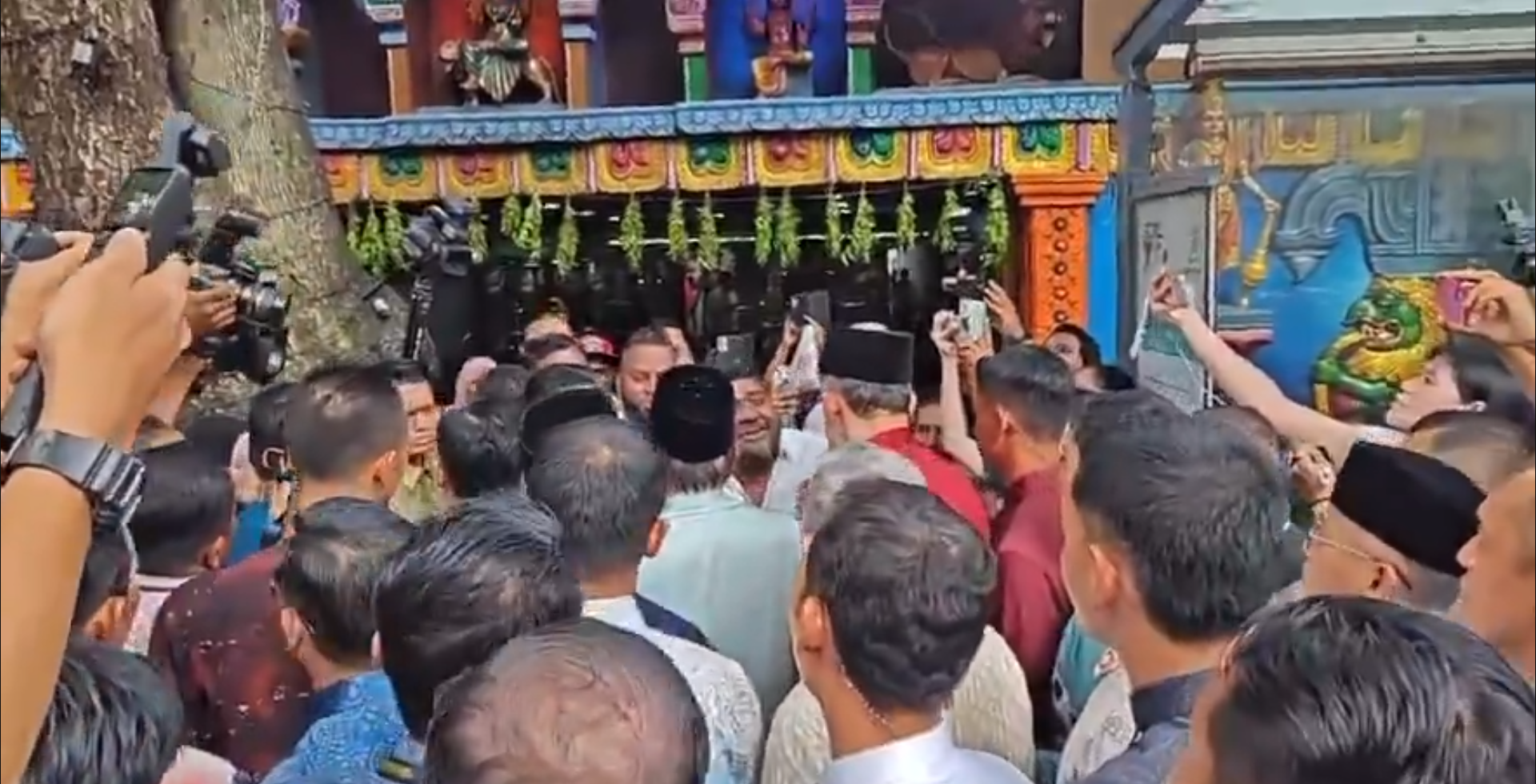 在仪式结束后,安华徒步走到隔壁的印度庙,向庙方管理层亲切打招呼。