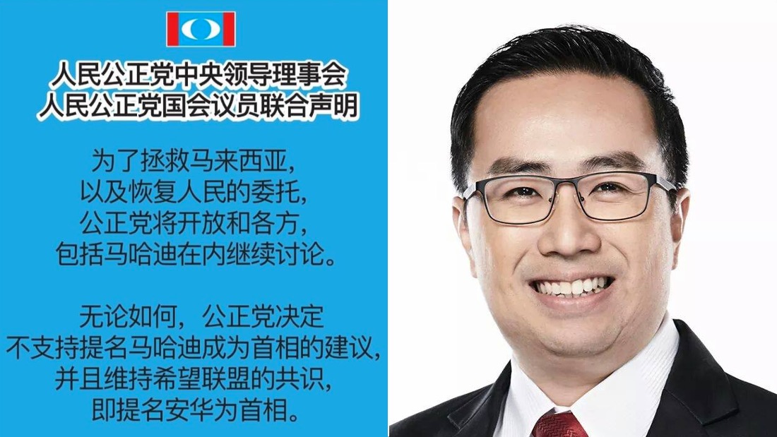 “民希盟”虽展延宣布首相人选,但坊间不时传出消息称“马安配”是最有可能的阵容,直至公正党正式宣布,他们拒绝敦马成为首相候选人,安华也开始大动作接触其他阵营领袖。