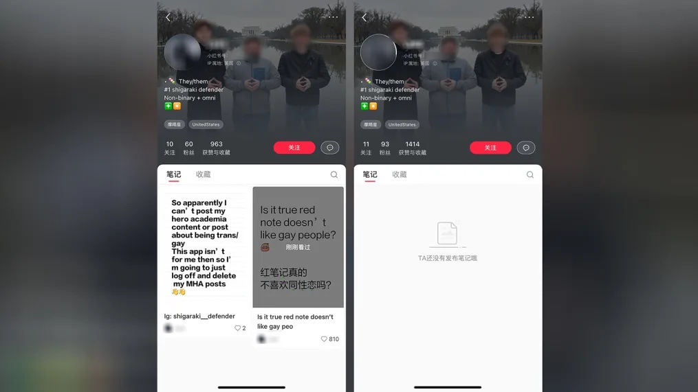一名自称“非二元性别”的用户表示,他曾在小红书发了一则贴文,询问该平台“是否真的不喜欢同性恋者”,结果在不到一个小时内,他的帖文就被移除了。