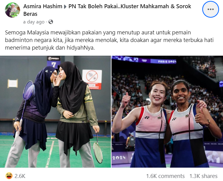 然而,一名巫裔女子却在面子书发文,斥责大马女双的运动服过于暴露,希望国家能强制我国羽球选手,穿上能够遮盖身体部位的服装,否则以“侮辱伊斯兰教“为由褫夺公民权。