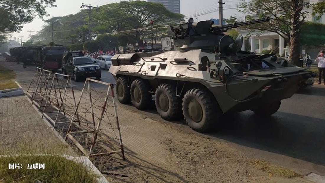 装甲车辆近日出没于缅甸多个城市。