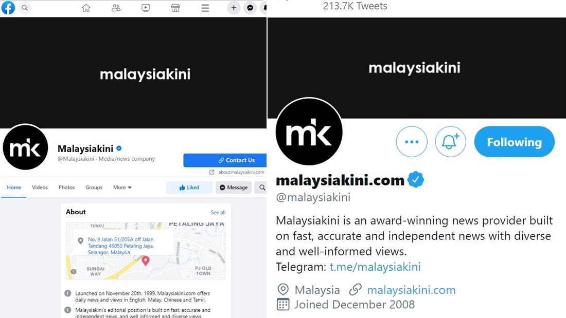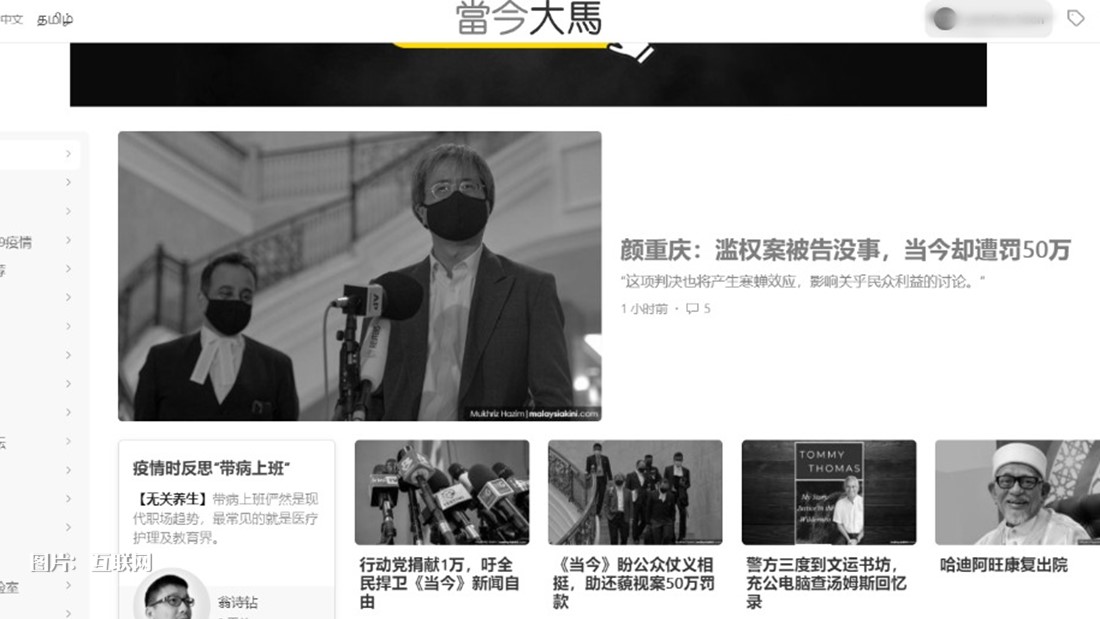 《当今大马》的所有社交平台包括新闻网站、推特、面子书、Telegram、Instagram等都呈现“一片黑”的情景。不只是公司标志、社交媒体的头像,就连官方网站的新闻图都换成了黑白色。