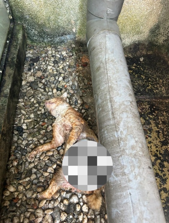 猫咪尸体被发现在马大医学院的一处排水管旁,位置非常隐蔽。(图片取自“Jelyn姿琳”小红书)SPCA与数单位合作调查杀猫案