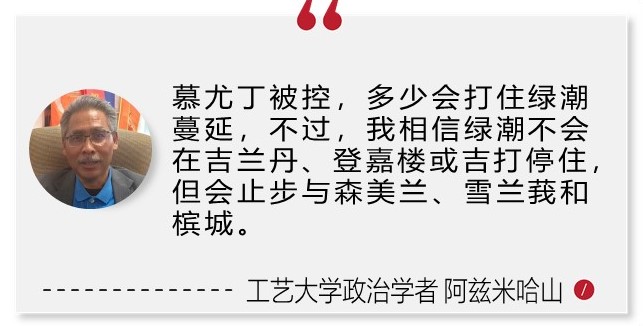 不过,另一位来自工艺大学的政治学者阿兹米哈山,却有不同的看法。他认为,虽然慕尤丁被控,现阶段或许还看不出来会否冲击到绿色浪潮,但是时间长了则不一定。