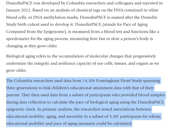 然后,再通过参与者所提供的血液样本,用一种称作 DunedinPACE 的表观遗传时钟的算法,来计算衰老的速度。