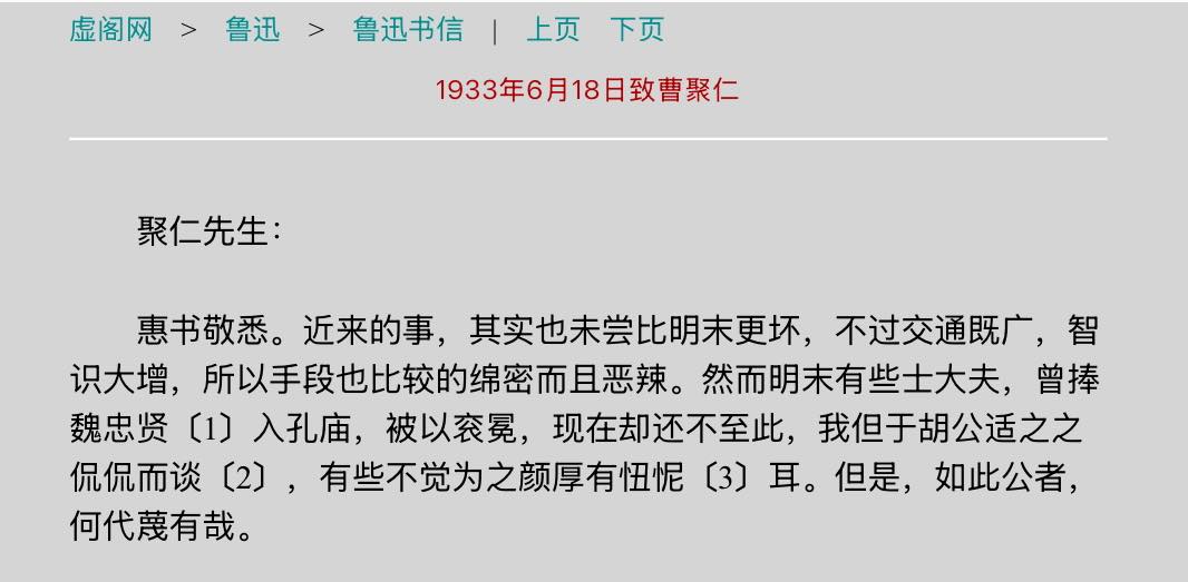 “一起看看1933年鲁迅写给曹聚仁的信函:‘胡公适之’。胡适活到了1962年。”