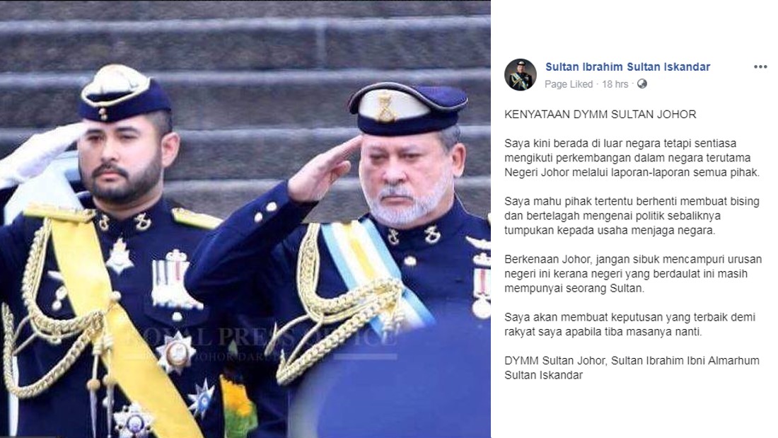早在希盟执政前,马哈迪与柔佛王室的关系就处在紧绷状态。在 509大选前,马哈迪就激烈批评柔佛王室有份投资的森林城市计划,引起外界哗然;后来在投票前,柔佛王储突然高调批评马哈迪阴险如蛇,还以“船如果还能用,就不需要换船长,不能因为某个人而毁掉整个组织。”,暗喻没有换政府的必要。