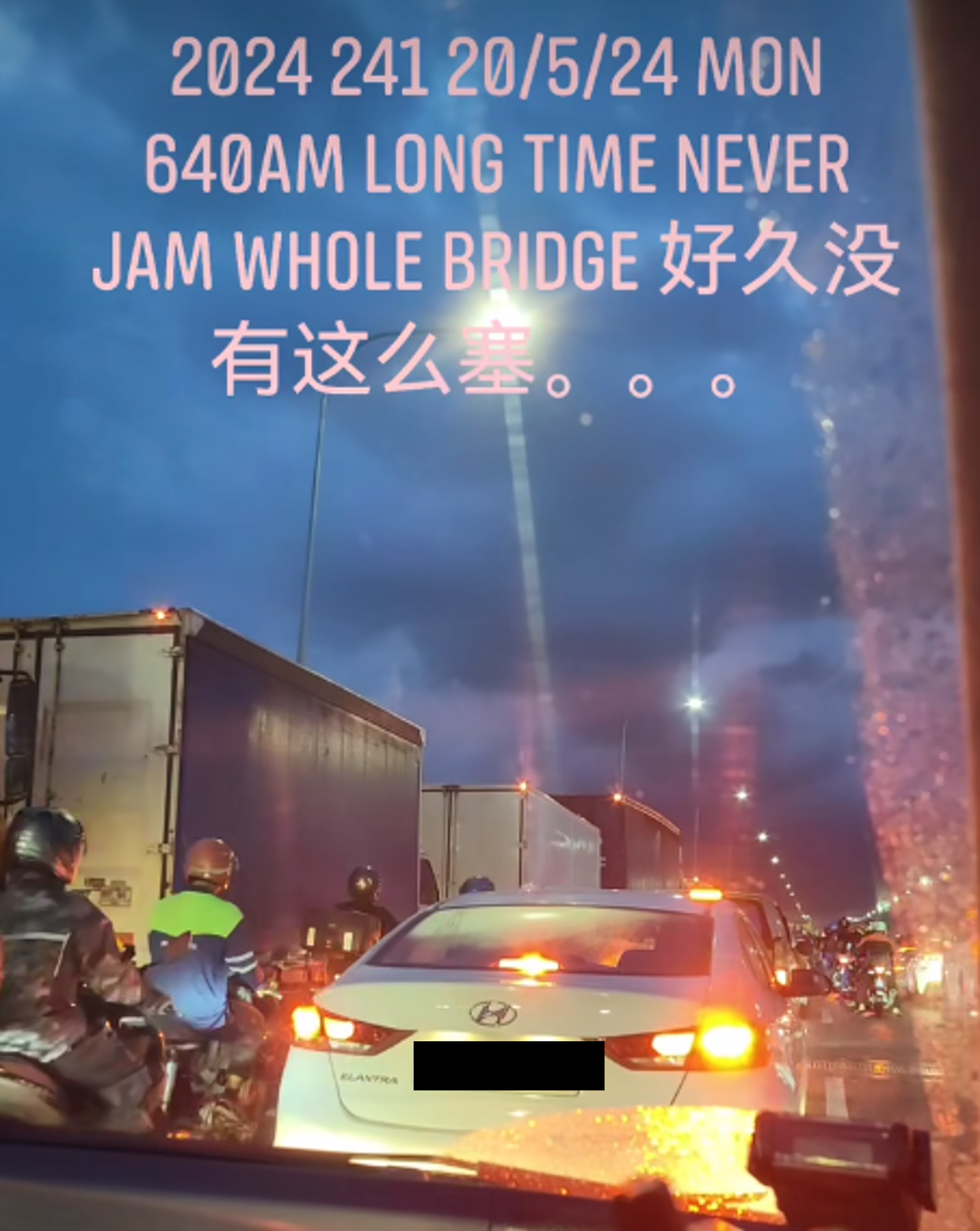 新柔长堤清晨发生大塞车,但截至目前塞车情况已经有所缓和。