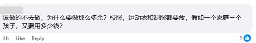 此外,也有家长抱怨,虽然教育免费提供2枚国旗徽章,但根本不够用,表示一个学生至少有3至5套校服。