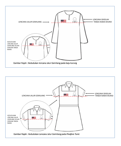 根据指南,除了校服,学生运动服、传统服饰(峇迪、马来传统服饰)、课外活动制服(单位制服),及技职学院企业制服,都必须佩戴国旗徽章。徽章的佩戴位置须在校服右胸处,与学生姓名标签齐平,以确保整齐划一。