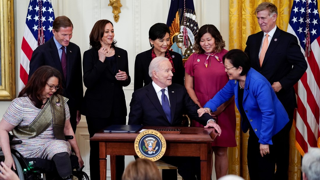 继美国众议院通过反仇恨亚裔法后,美国总统拜登今天在多位亚裔国会议员见证下,也正式签定名为《新冠仇恨犯罪法案》(Covid-19 Hate Crimes Act)。