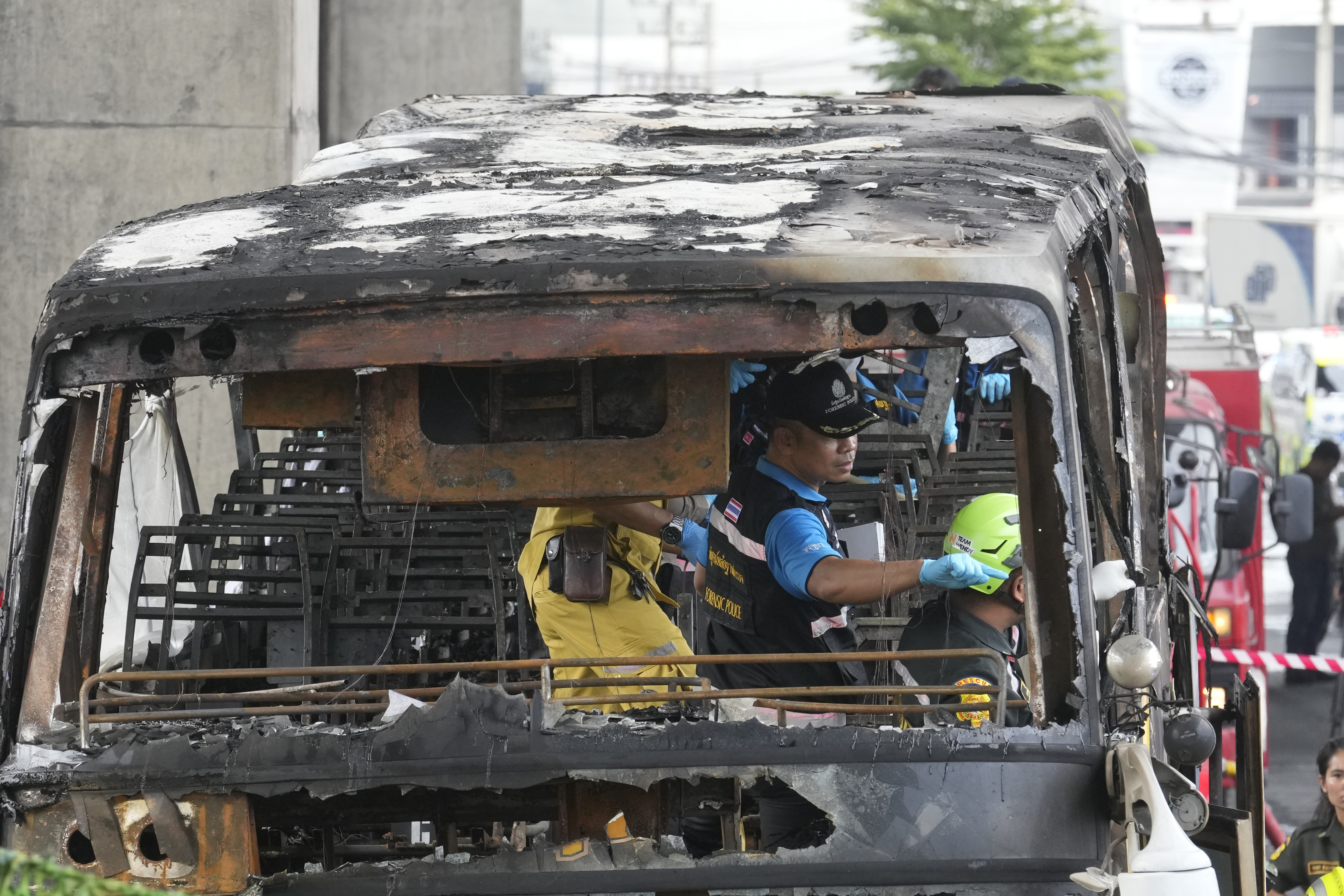 看更多: 泰国校巴爆胎撞护栏起火 年幼学童遗体卷缩车尾