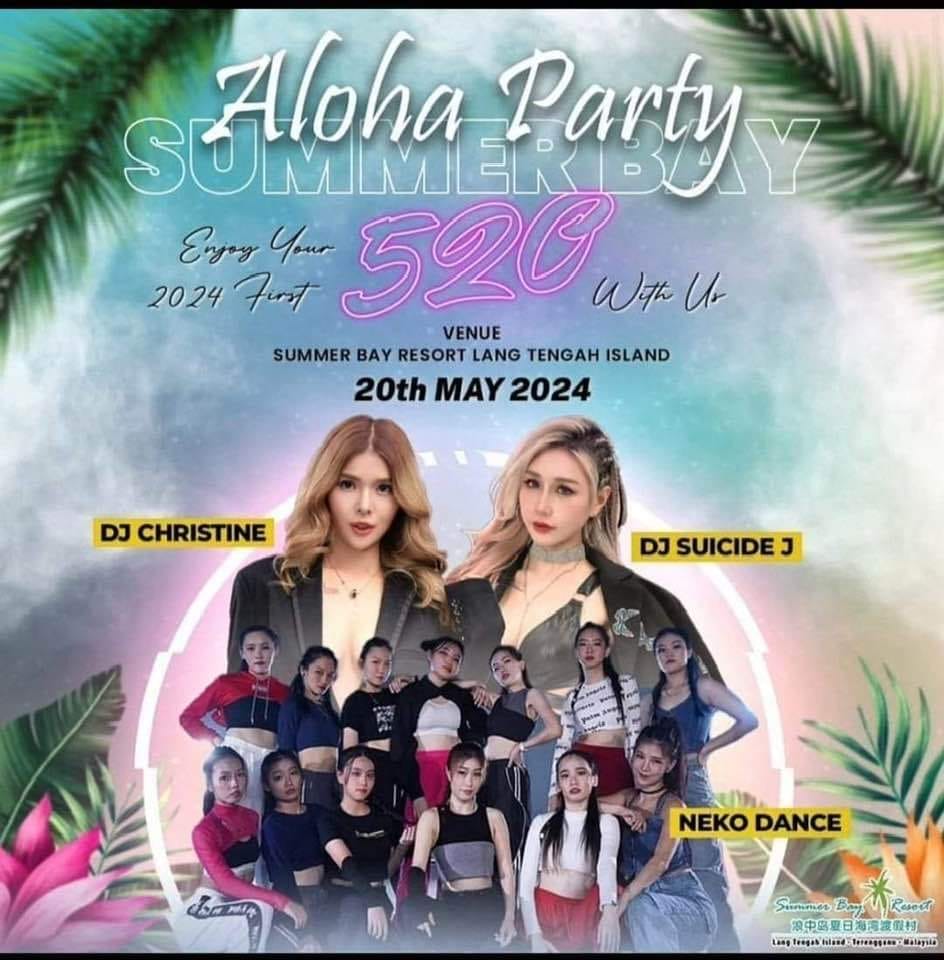 根据网上流传的海报,这场名为“Aloha Party”的沙滩派对,被视为是配合非官方情人节在前天(5月20日)举行。