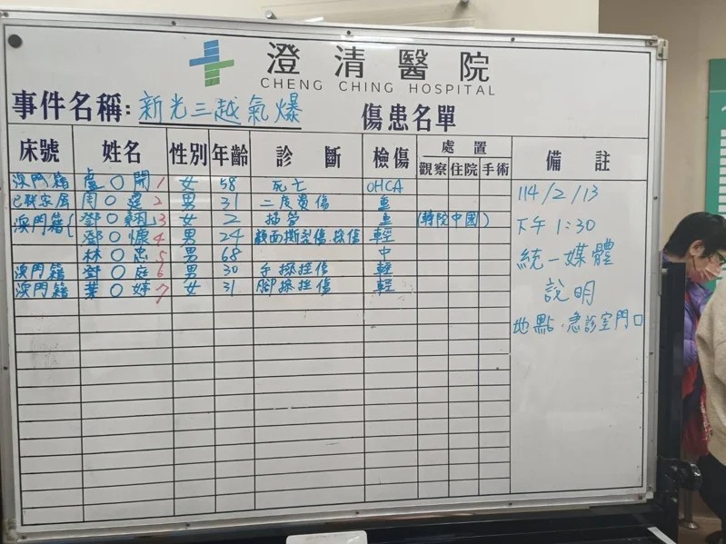 根据台湾媒体报道,死伤者中包括澳门游客,事发时一家三代7口经过附近不幸遭波及,其中一名58岁的妇人抢救后宣告不治,他的丈夫则当场死亡,一名2岁女童则头部严重重伤,其他家人仅擦伤无大碍。