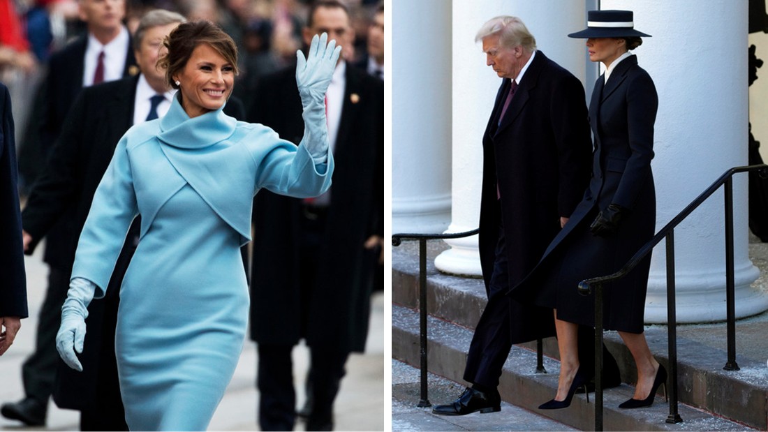 梅拉尼娅在特朗普就任总统就职典礼上的穿着,有着截然不同的风格。(左图:2017年;右图2024年)