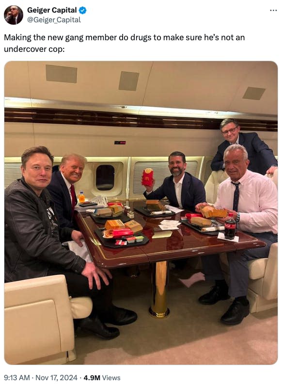 尽管特朗普看起来有比上一任期来得瘦,而他不酗酒和不喝咖啡,但却对快餐情有独钟。