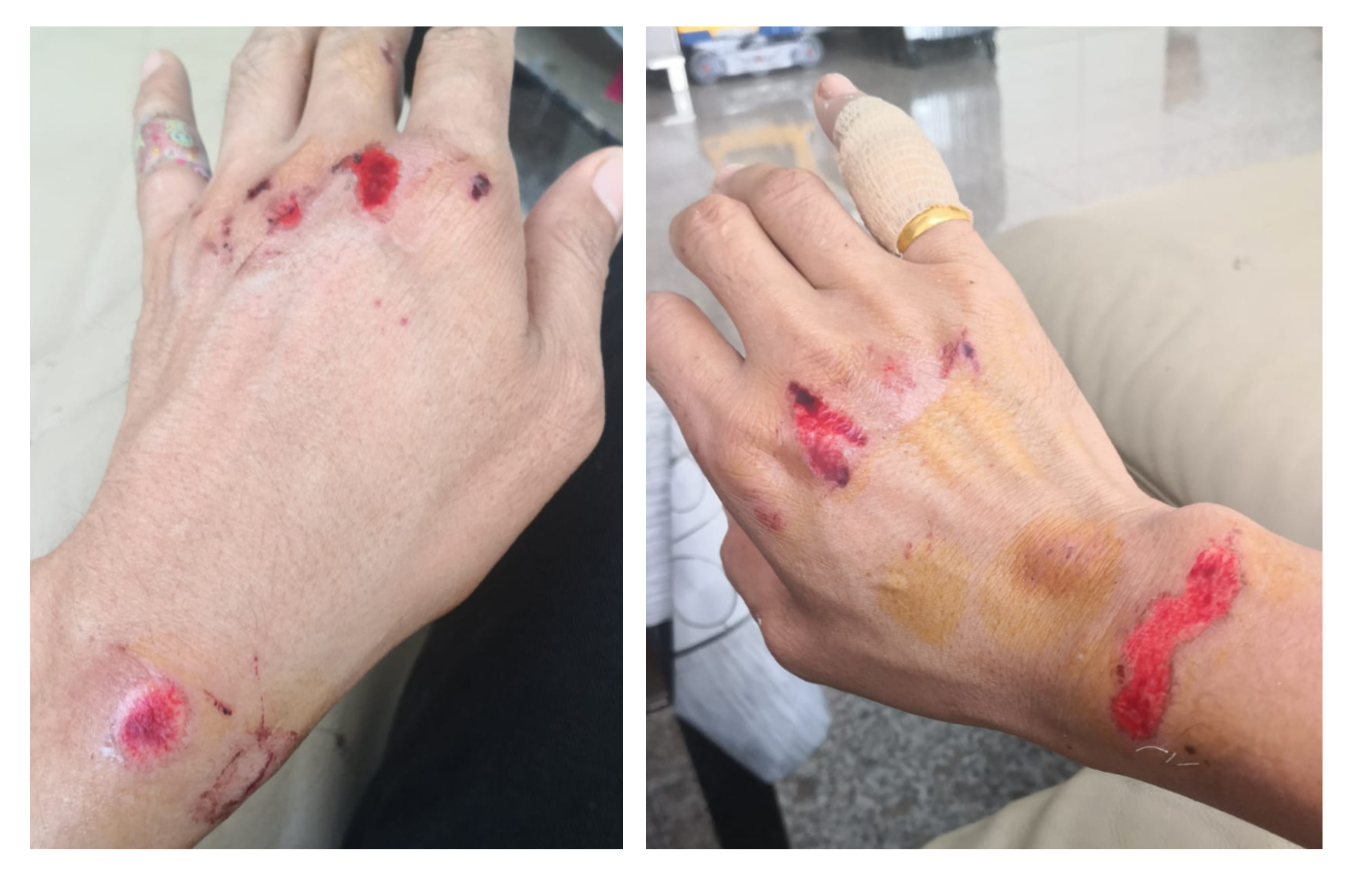 为了避免绑匪离开,商人想要抓住车门,但还是被车子甩到路面,导致脸部、手臂多处受伤,鼻子和嘴唇擦伤,还因此掉了两颗牙齿。