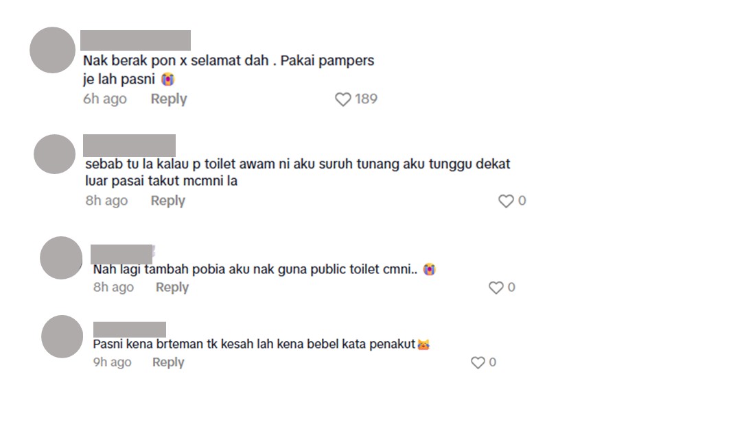 “以后去公共厕所都要人陪,特别是槟城诗布朗附近的国油油站,实在让人担心。”