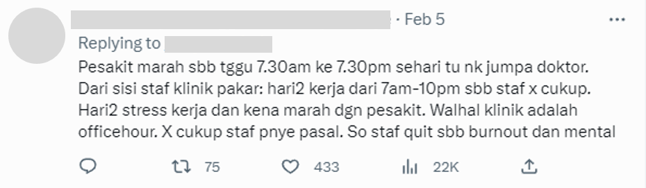 有网民留言表示,该名病人会大吵大闹是因为从7:30AM等候至7:30PM,但站在医务人员的角度想,因为专科诊所人手不足,需要每天从7AM工作至10PM,所承受的工作压力已经非常大,同时又要面对病人的谩骂,在身心倦怠下不少人都选择离职。”