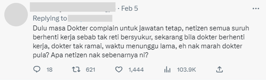 也有人留言说,医生在要求固定职位时,许多人叫医生辞职,因为不懂得感恩;如今有些医生辞职了,医院人手不足,病人的等候时间很长,却又对医生生气。