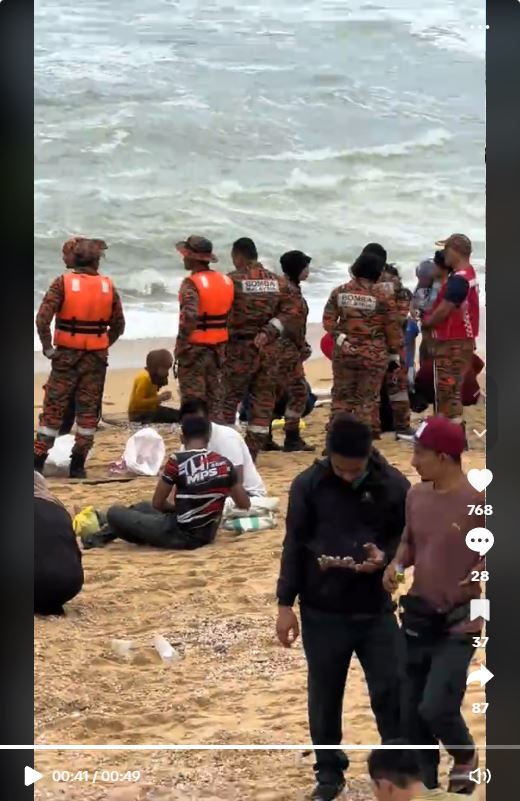 随着越来越多人涌至海滩,现场也出现不少消防员在海滩周围驻守。而龙运警区主任麦祖拉发文告,促请民众立即停止捡蛤的行为,以确保自身的安全。