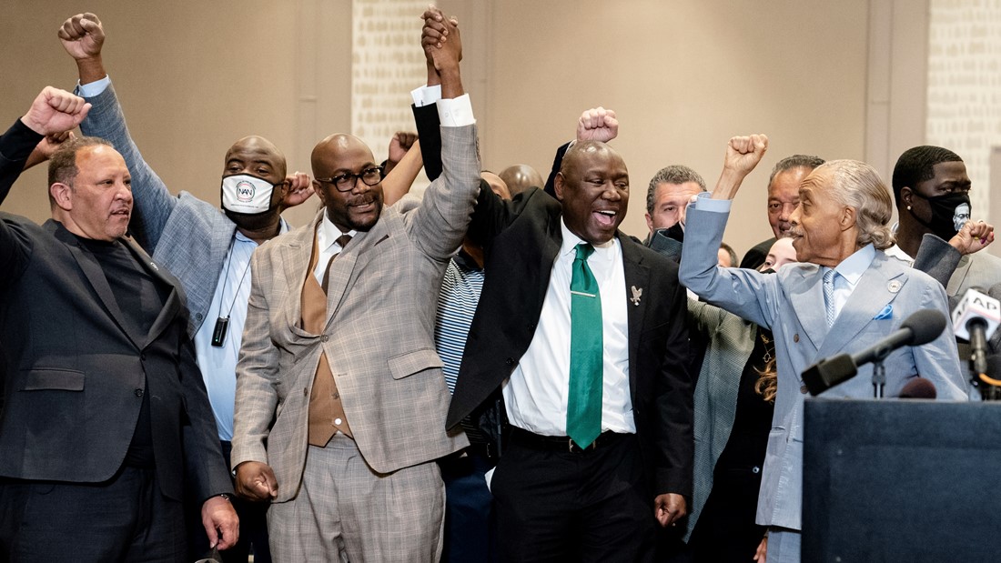 弗洛伊德的弟弟与代表律师在判决出炉后,召开记者会宣告胜利。