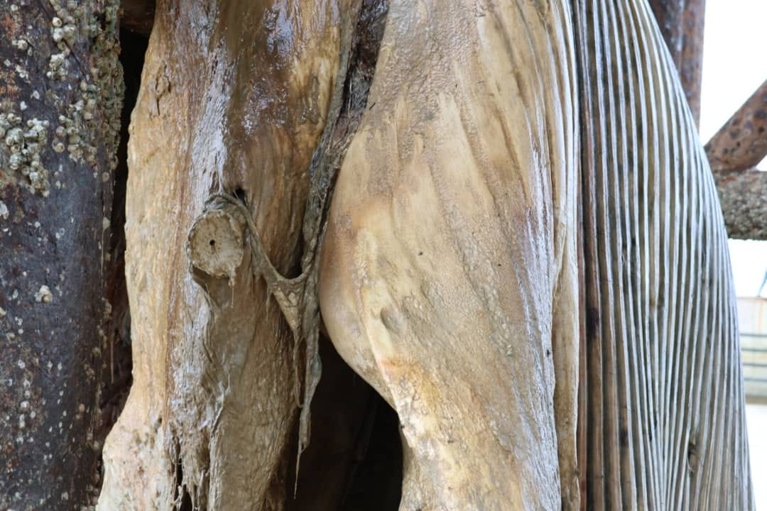 这具鲸鱼尸已处于高度腐烂,濒临解体的状态。