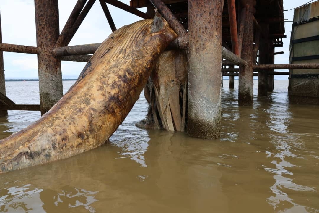 鲸鱼尸体目前卡在砂拉越特里索大桥(Jambatan Triso)。