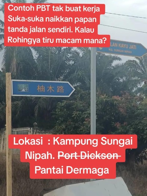 此外,波德申市议会主席哈斯诺(Hasnor Abd Hamid)表示,当局将把双溪立百新村至少16个中文路牌,改设为双语路牌。