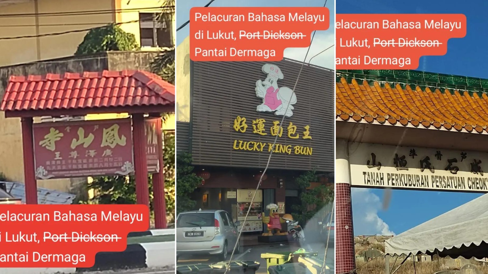 除了立百新村的中文路牌被盯上,位于森美兰波德申芦骨一些华人庙宇的招牌也被该组织点名。(截图自短视频平台TikTok账号@identiti.malaysia)