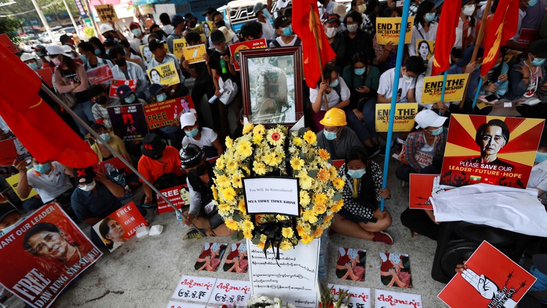 缅甸截至今天共有3人不幸牺牲,包括一位中弹,即2月19日身亡的女性、妙兑兑凯(Mya Thwet Thwet Khine)。