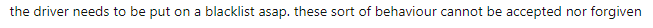 “需要尽快将司机列入黑名单,这种行为不能被接受,也不能被原谅。”