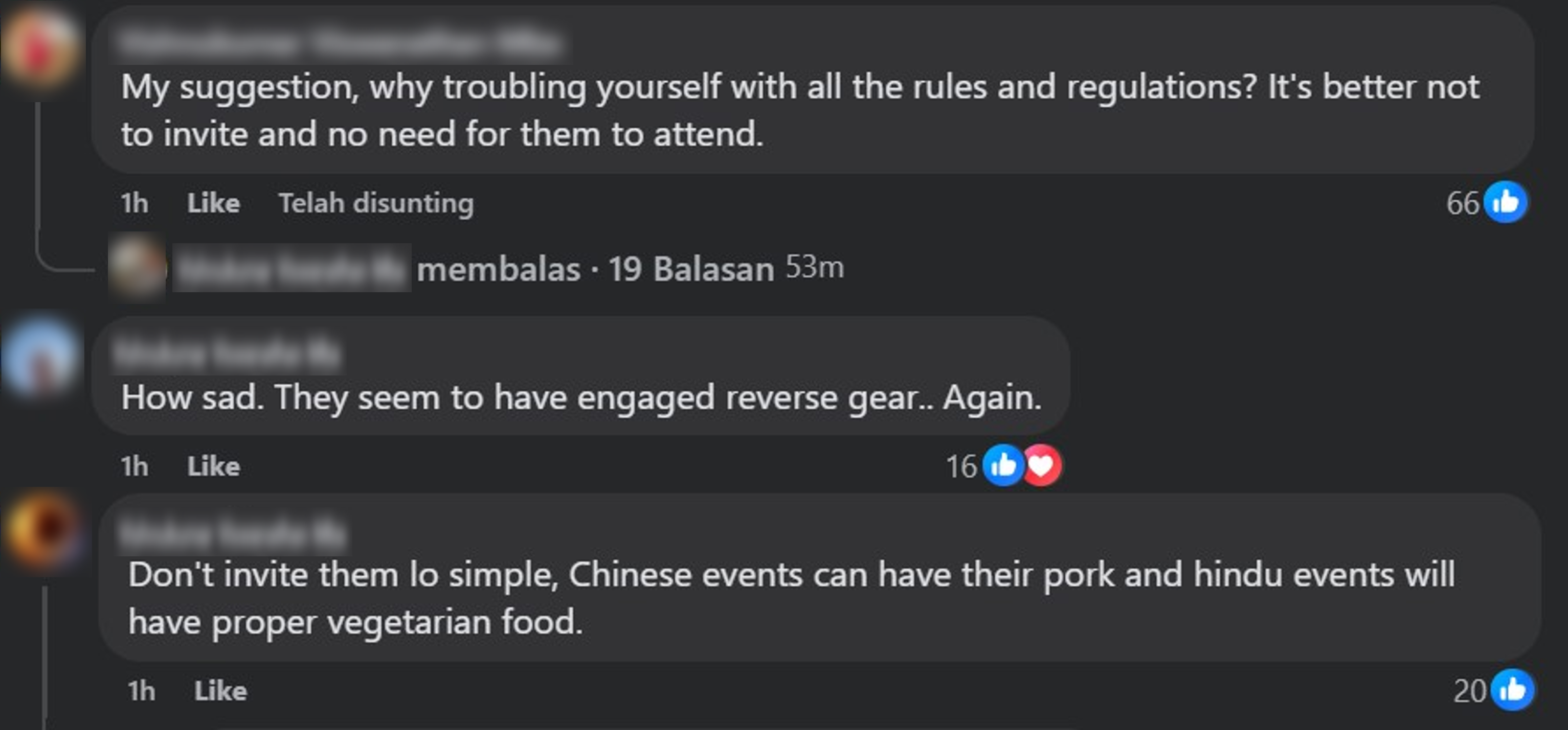 “最简单就是不要邀请穆斯林,那么华人就可以在活动上吃猪肉,印度人也可以在活动上吃素食。”